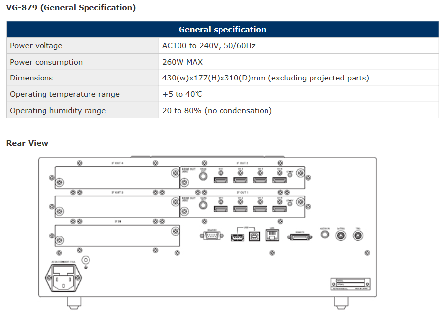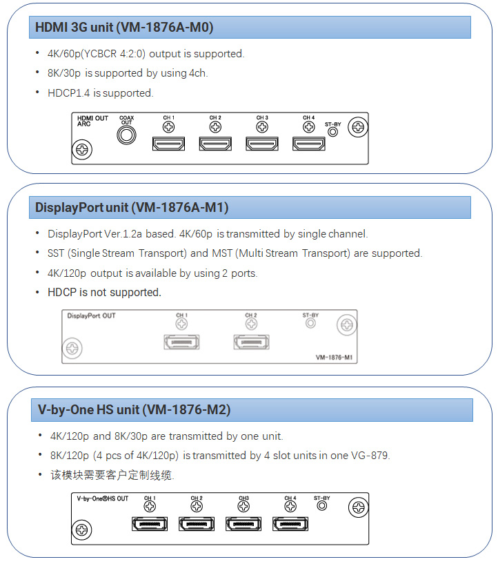 - 通過同步4個或2個VG-879,可通過V-by-One® HS支持8K/120p或8K/60p信號